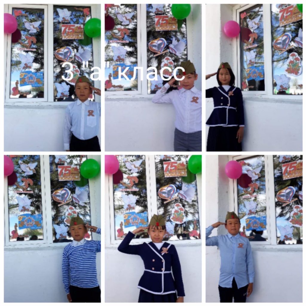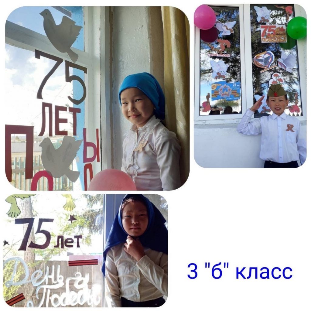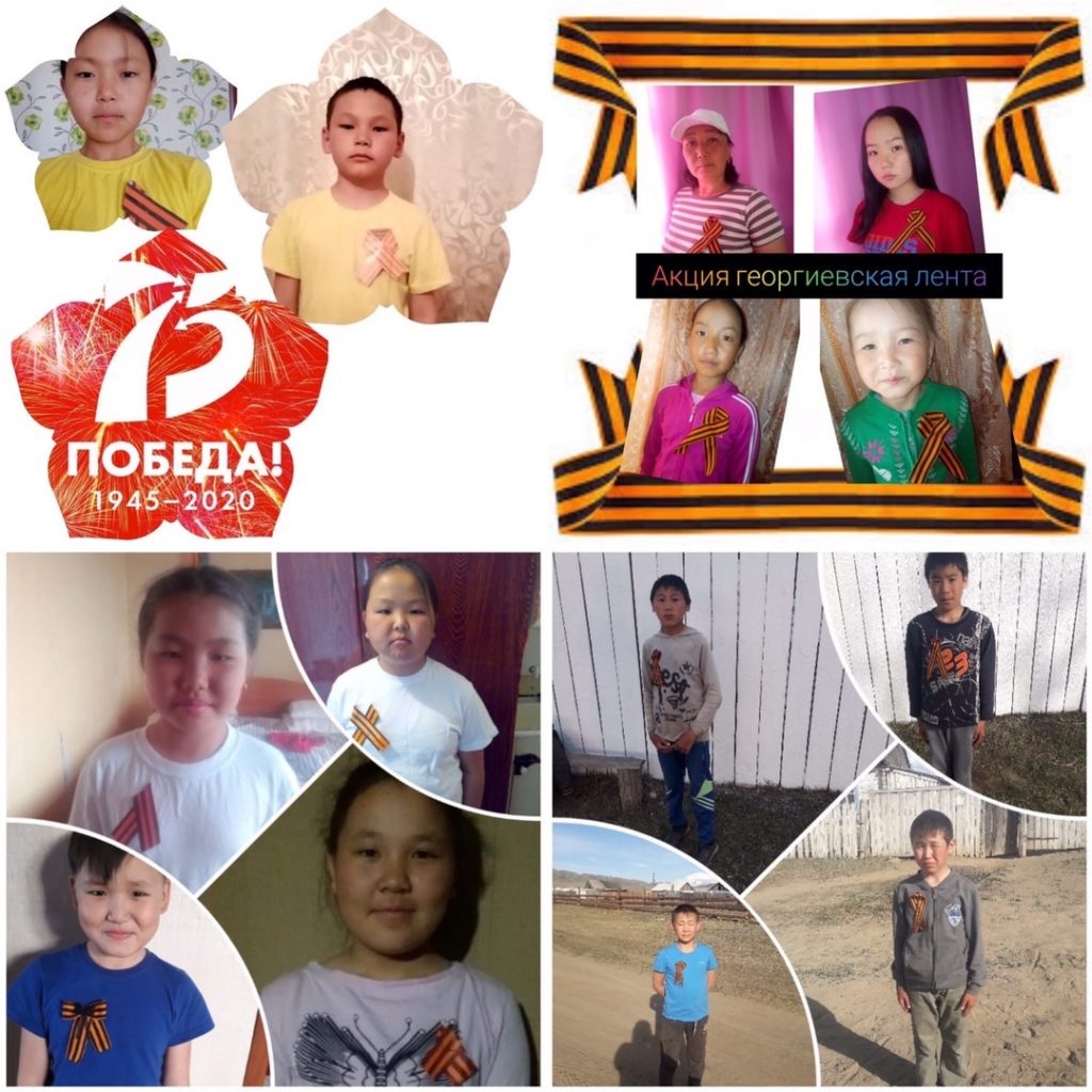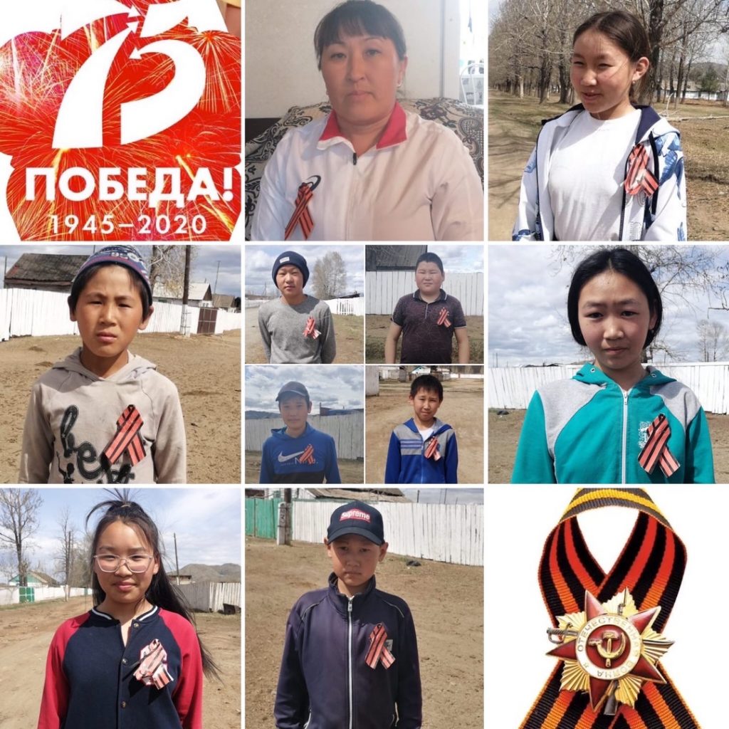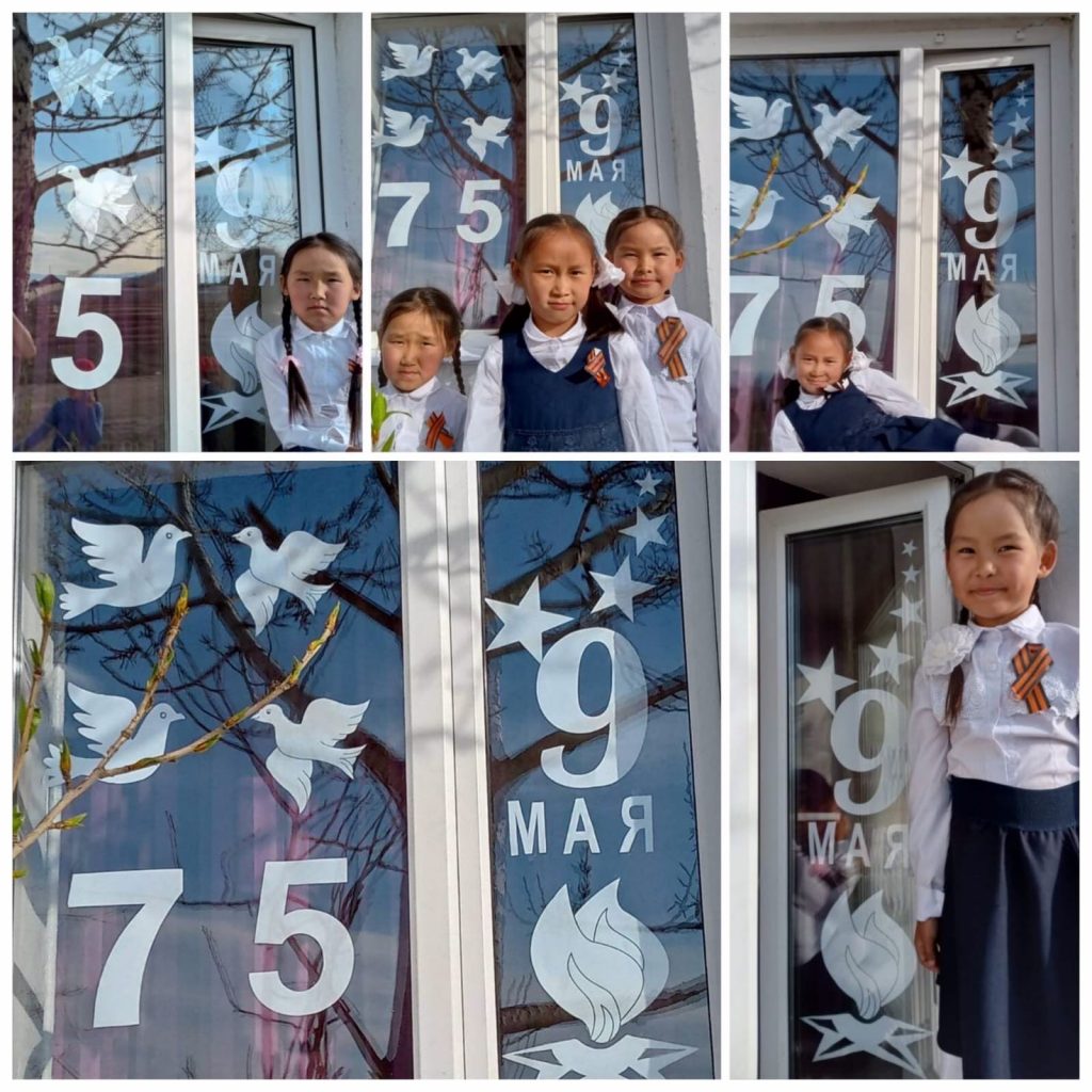 9 мая ученики МБОУ СОШ с.Эрги-Барлык активно участвовали в акциях » Окна Победы», «Синий платочек», «Георгиевская лента».