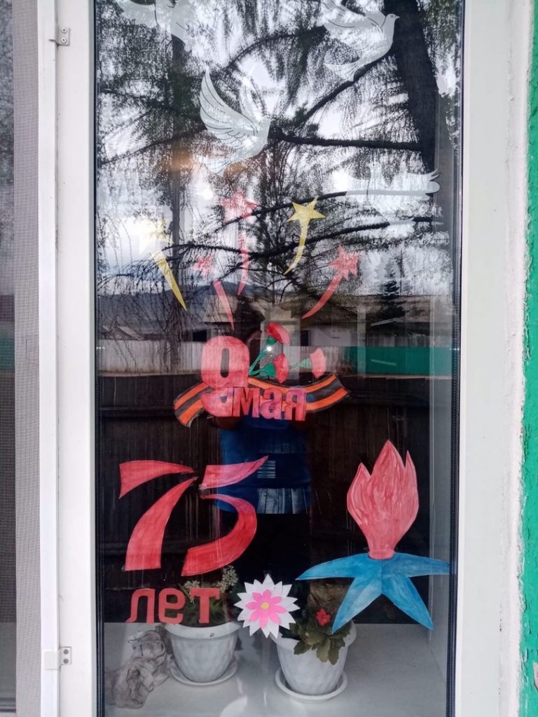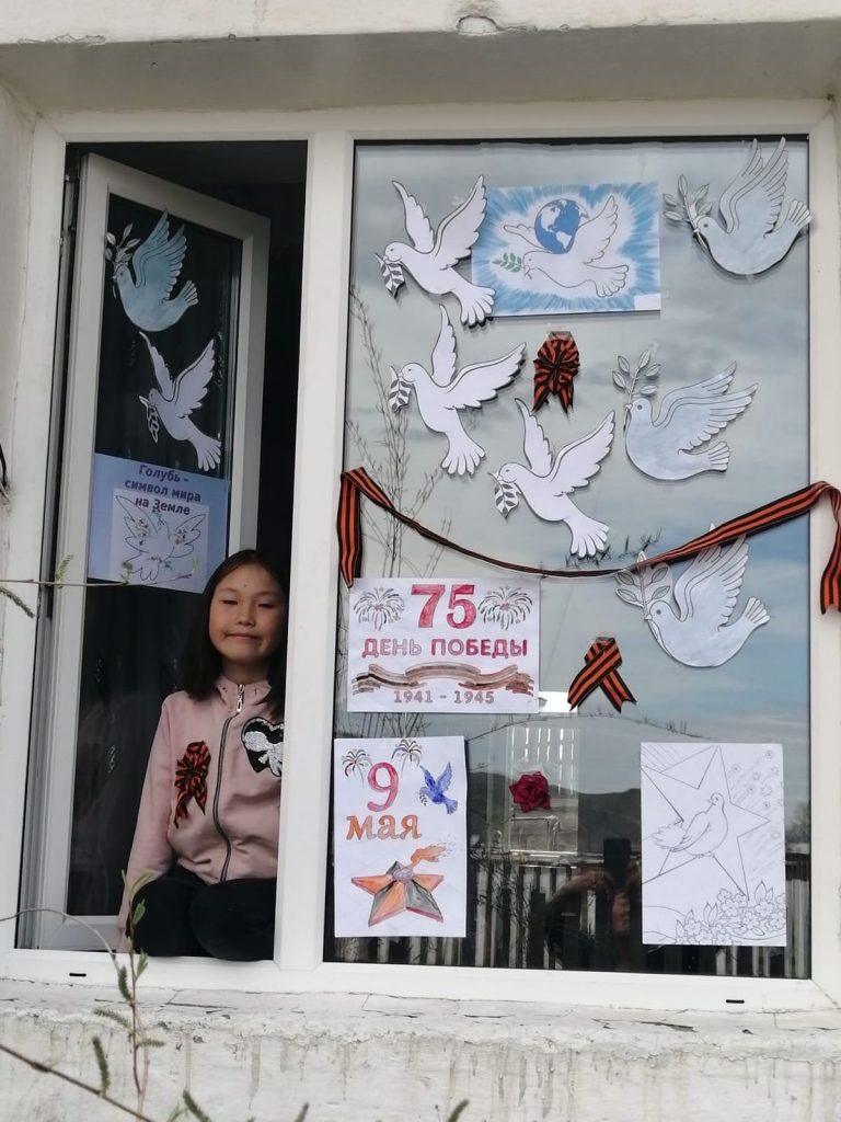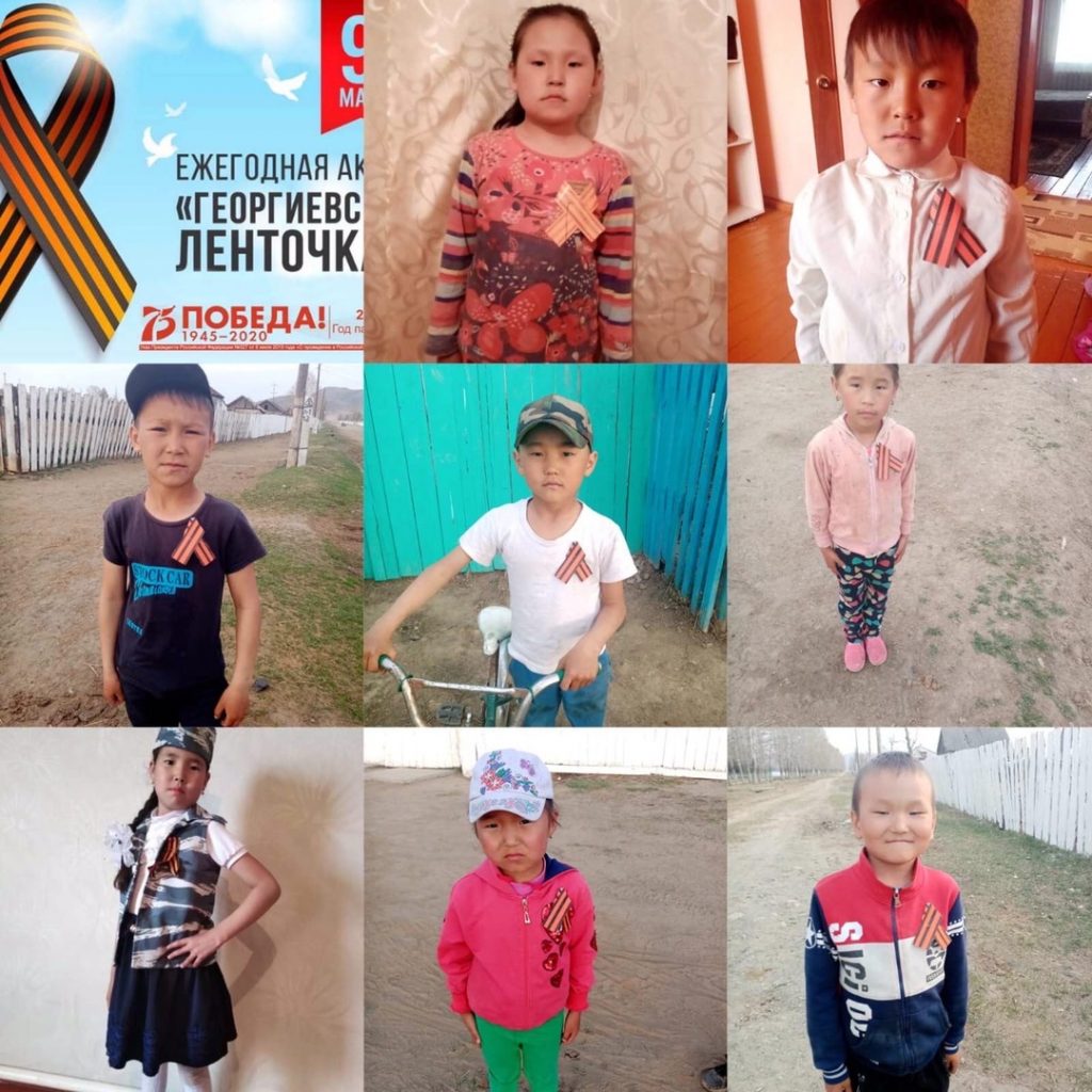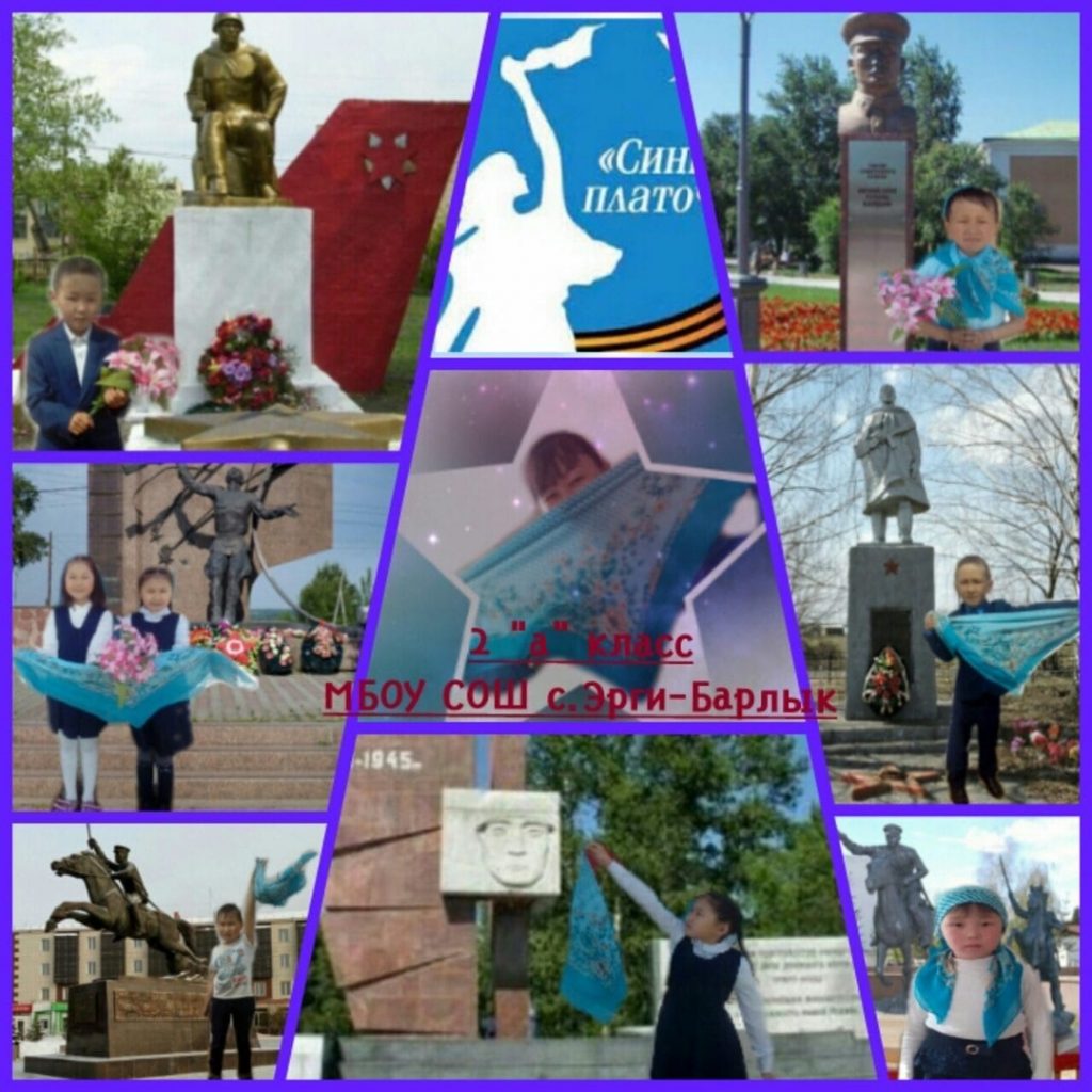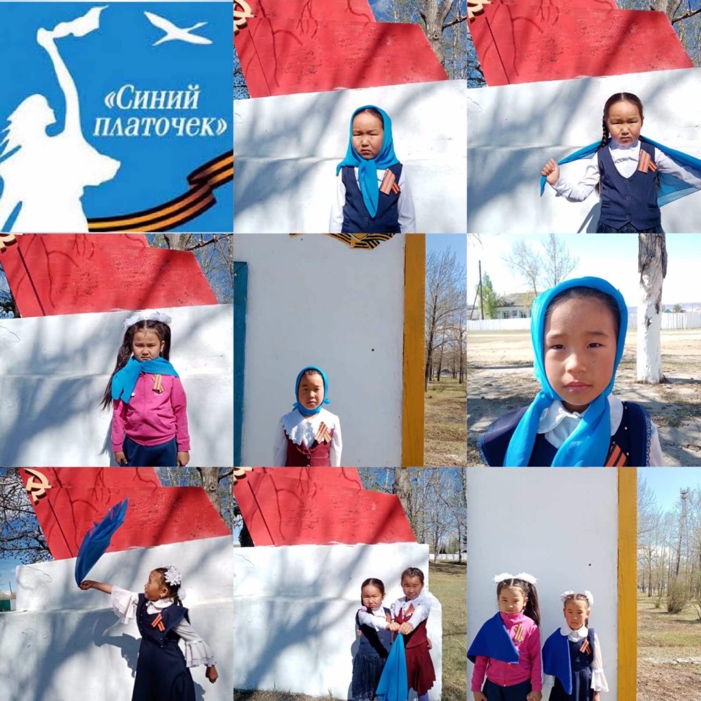 9 мая ученики МБОУ СОШ с.Эрги-Барлык активно участвовали в акциях » Окна Победы», «Синий платочек», «Георгиевская лента».