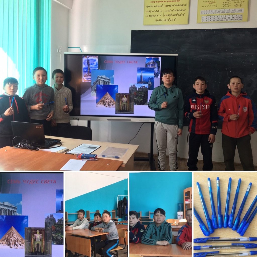 27.03.2023 г. Викторина-путешествие «Чудеса света» для учащихся 6-ых классов. Сначала учащиеся сделали небольшое онлайн-путешествие по странам «7 чудес света». Затем проведена викторина, после чего участники были награждены гелевыми ручками. Охват: 13 мальчиков.